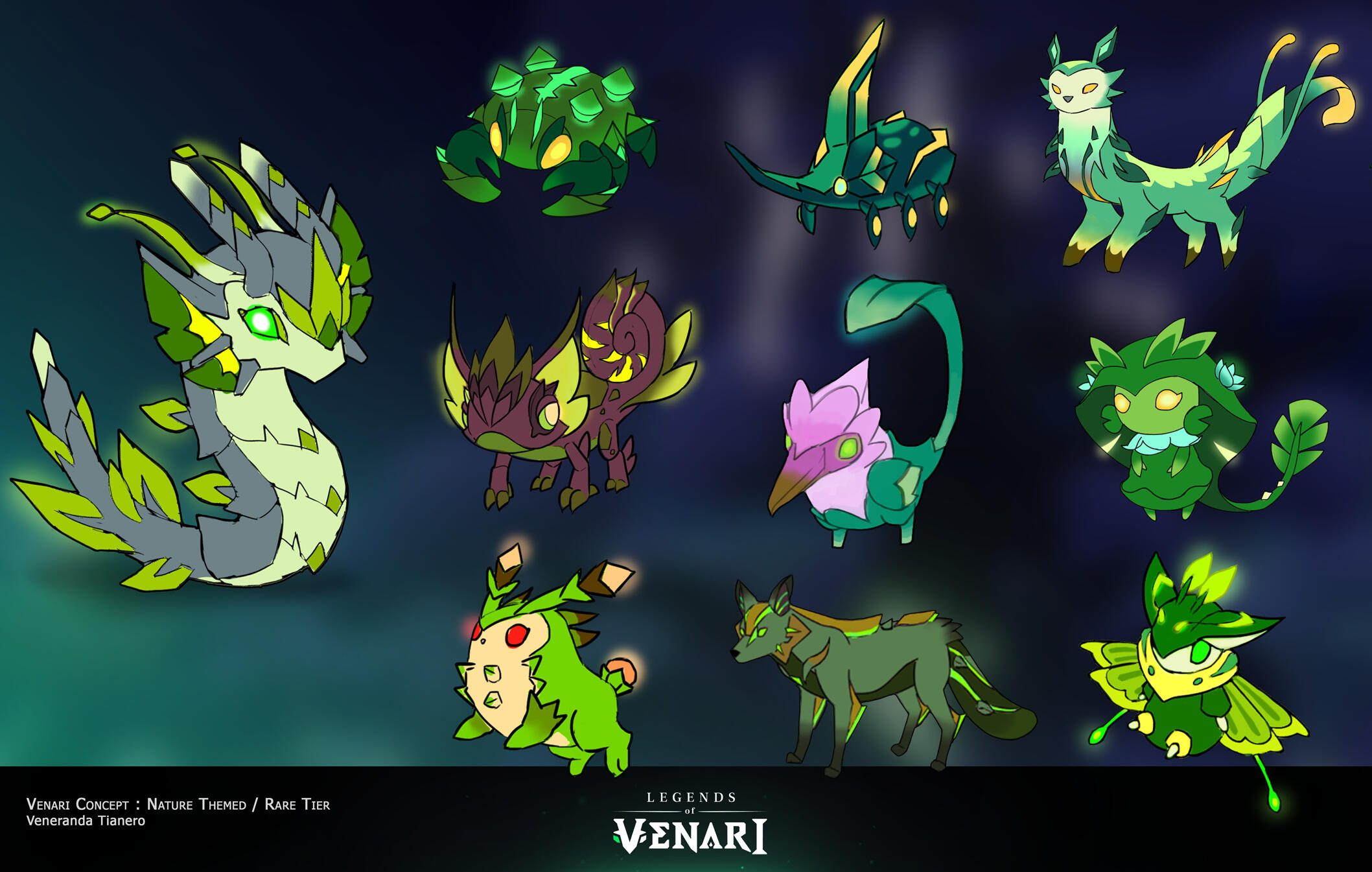 Legends of Venari is a monster taming and collection RPG. As the main concept artist, I created over 70+ monster (Venari) designs. During the game's transition into an open-world environment, I became Art Lead, aiding in concept designs ranging from ui, props, npcs, and environments.